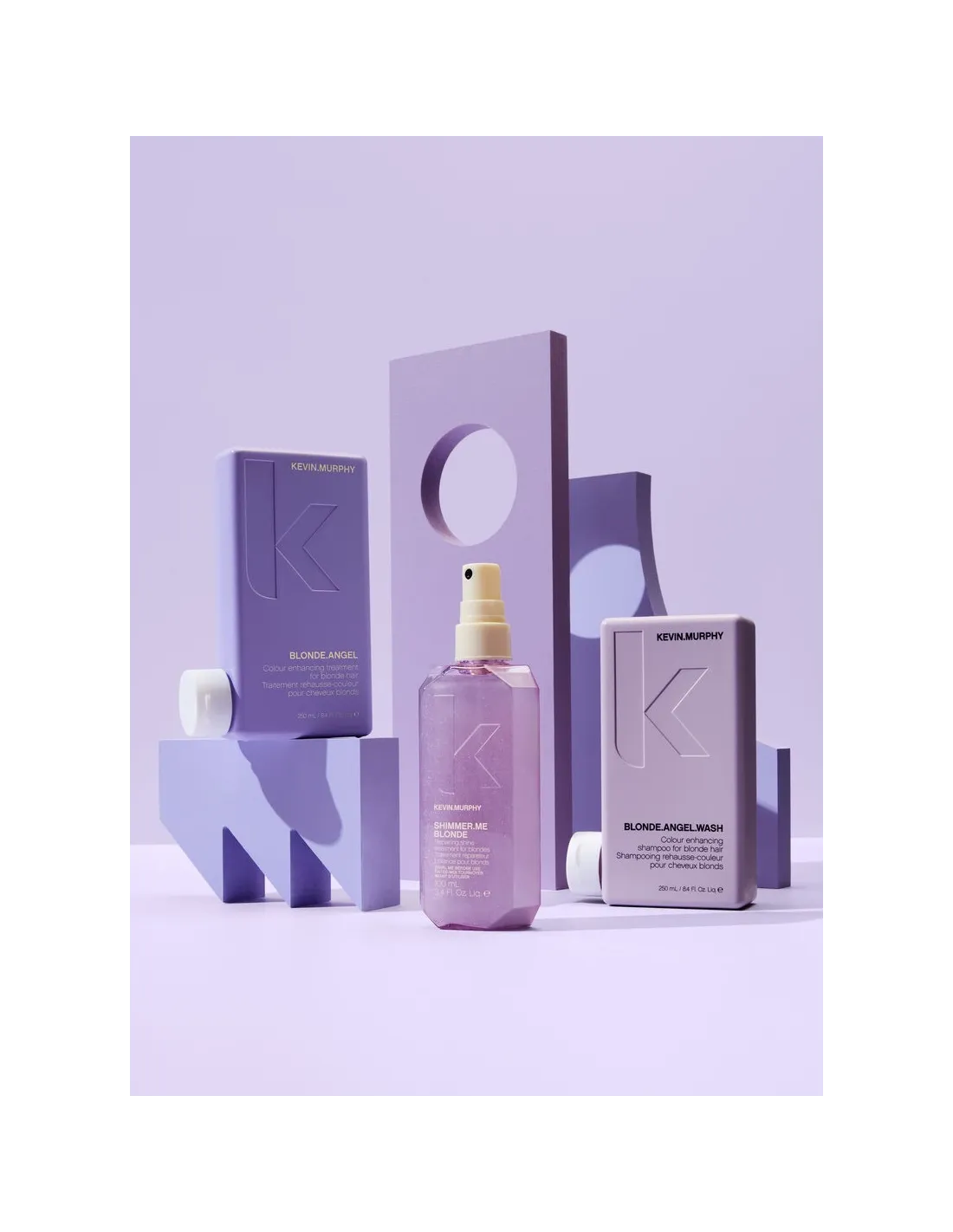 Laissez votre blond briller cette saison avec l'aide de soins colorants pigmentés, car les fêtes sont faites pour beaucoup de brillance et d'éclat. Composé de notre shampooing violet le plus vendu, de notre traitement et de notre soin réparateur sans rinçage - BLONDE.ANGEL.WASH, BLONDE.ANGEL et SHIMMER.ME BLONDE.