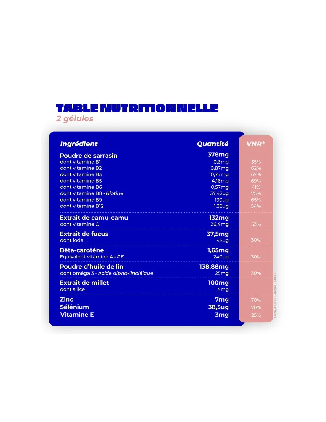 Complément alimentaire 100% vegan - sans gluten & sans allergènes.
